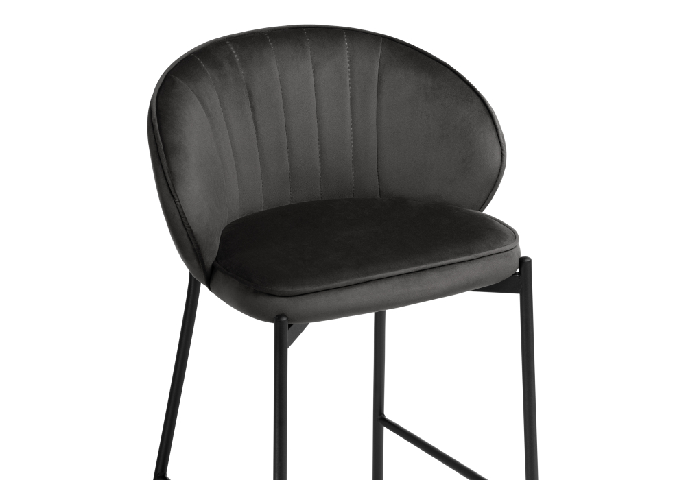 Материал каркаса - Металл; Материал сиденья - Велюр; Материал ножек - Металл; Материал обивки - Велюр; Цвет каркаса - Черный; Цвет сиденья - Серый; Цвет ножек - Черный; Цвет обивки - Серый; Ширина - 58; Глубина - 45; Высота - 92; Ширина сиденья - 45; Глубина сиденья - 37; Высота сиденья - 66;