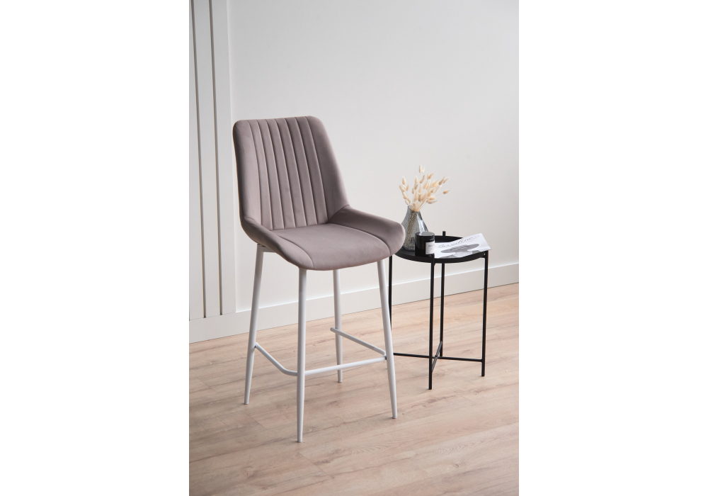 Материал каркаса - металл; Материал сиденья - велюр; Материал обивки - велюр; Цвет ножек - белый; Ширина - 49; Глубина - 57; Высота - 102; Ширина сиденья - 47; Глубина сиденья - 41; Высота сиденья - 63;