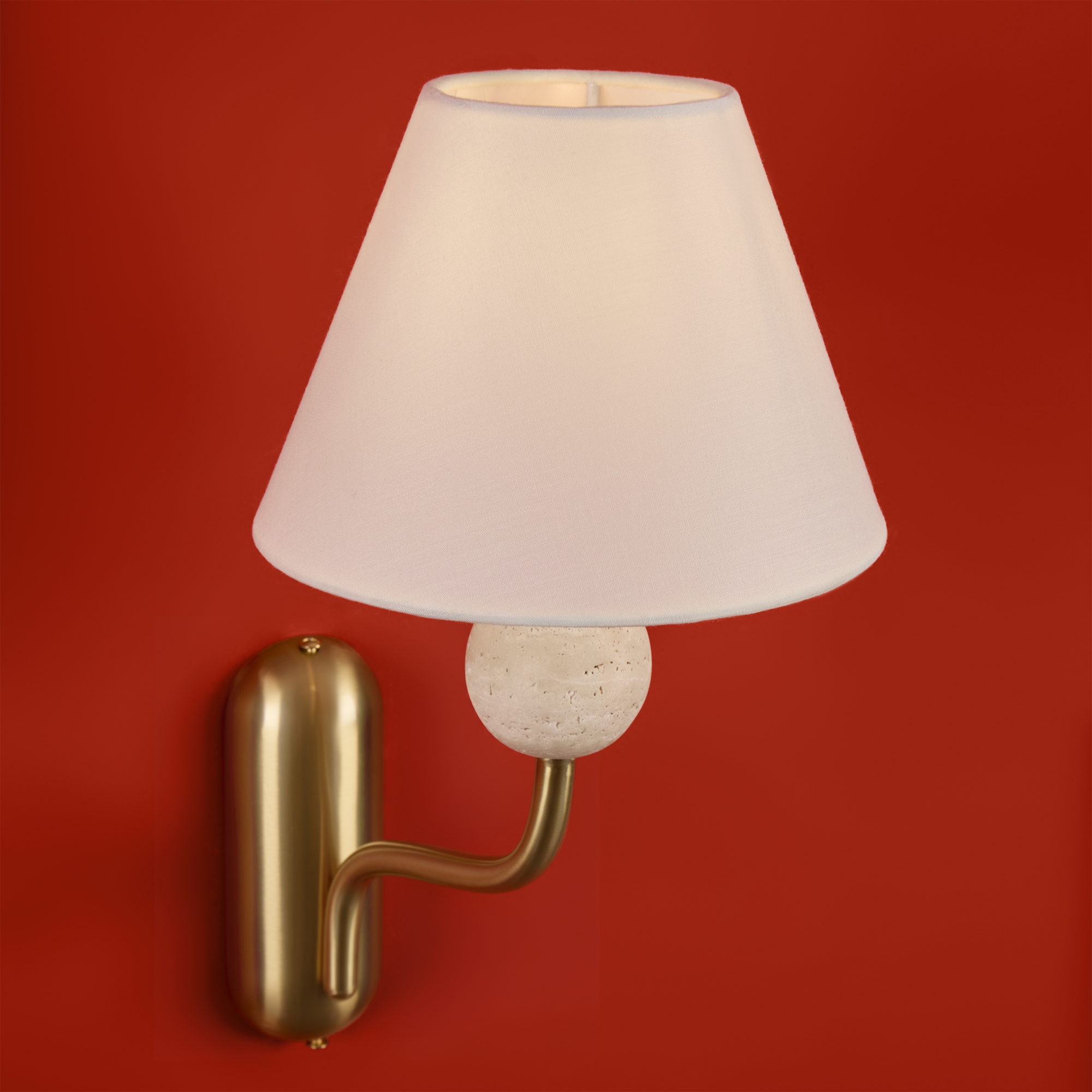 Арматура - металл в цвете латунь. Тканевые абажуры, травертиновые элементы. Лампы E14 (в комплекте). Серия состоит из люстры c 5 плафонами и бра. Трендовое сочетание в классическом стиле.
