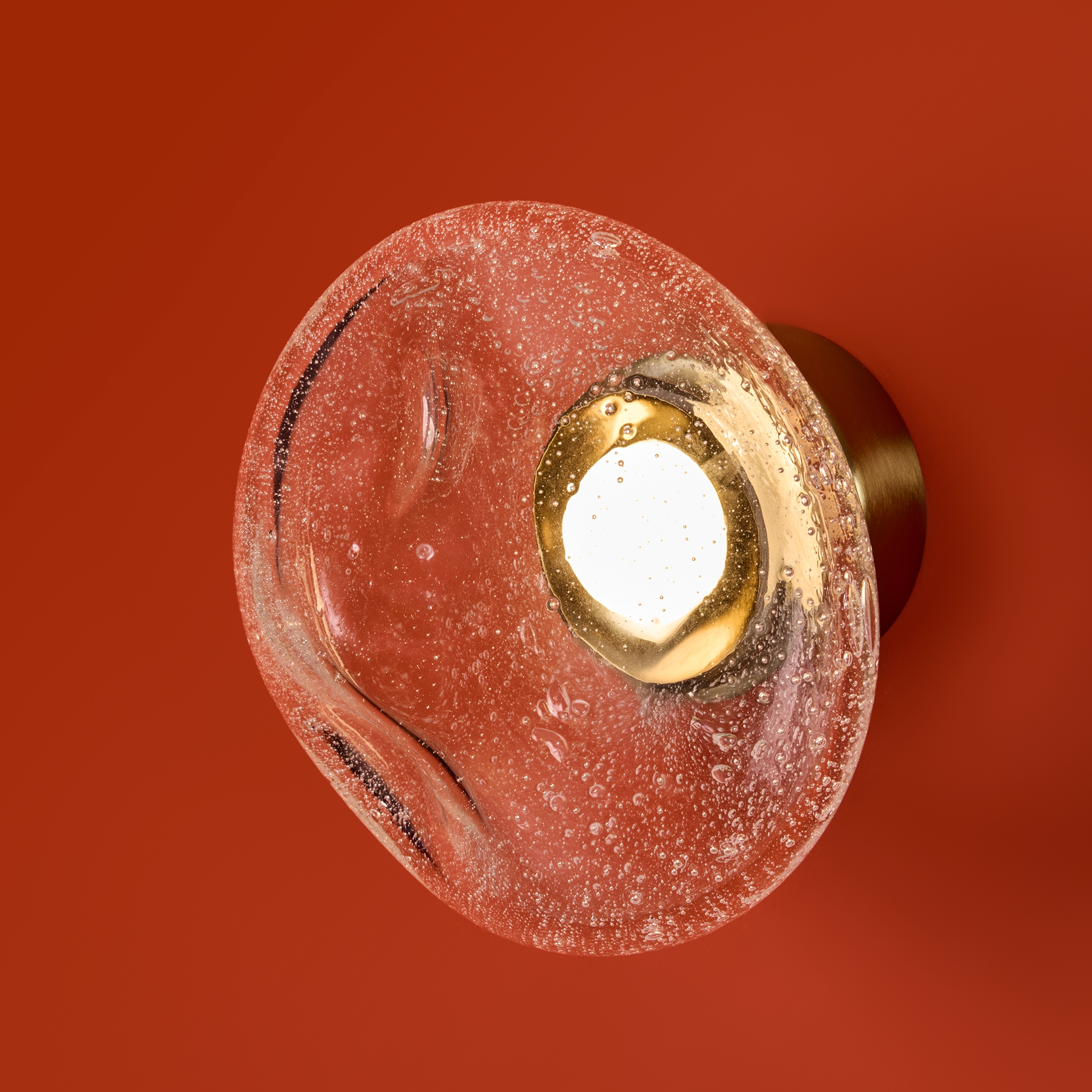 Арматура — металл. Стеклянные плафоны с пузырьками в трёх цветах: дымчатый, прозрачный, янтарный. Интегрированный LED источник света 3000К, Ra 80, угол 180°. Высота регулируется.