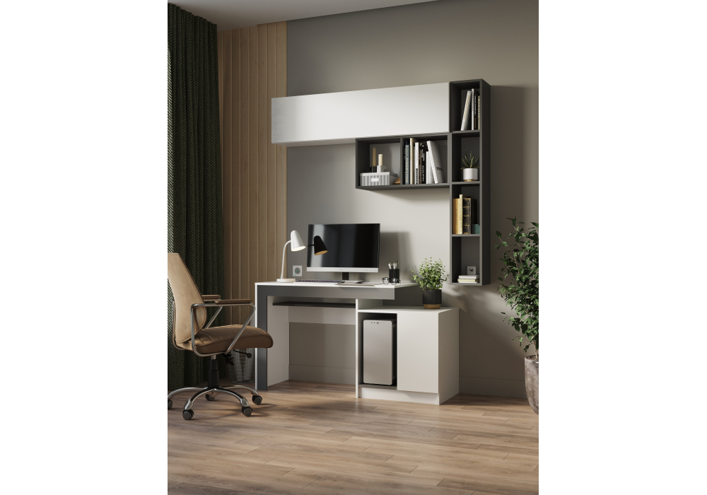 Состав комплекта ; шкаф навесной -563537 , компьютерный стол -631664 , полка навесная -631665 ,полка навесная -631666 .