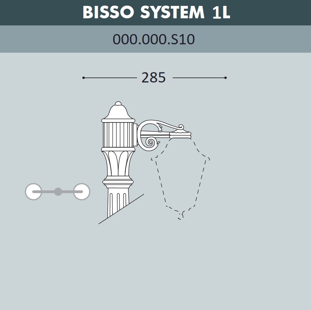 Консоль паркового фонаря на стену FUMAGALLI серии BISSO, модель BISSO SYS 1L. Классическая консоль на столб малого размера для одного паркового светильника малой или средней серии. Посадочный диаметр для консоли (на столб) и светильника - 60 мм, фиксация с помощью стопорных винтов. Монтаж только в положение "вниз". Дизайн классический, имитация чугунного литья или ковки. Изготовлена по технологии FUMATECH, с использованием материалов с разными физическими свойствами. В центре кронштейнов расположены стальные, оцинкованные с двух сторон трубки, (внутри проходят провода), которые придают им дополнительную прочность и жесткость. С внешней стороны используется сверхпрочный технологичный полимерный материал RESIN, который защищает поверхность от агрессивного воздействия всех атмосферных факторов (покрытие не ржавеет, не выгорает на солнце, не боится солей и реагентов). Не проводит электричество!!! Кронштейн и светильники на ней не требуют заземления и относятся к 2 классу электробезопасности. Срок службы - не менее 20 лет. Температура эксплуатации от -60 до +90. Для установки парковых фонарей FUMAGALLI на стену можно использовать консоли BISSO WALL (стена).