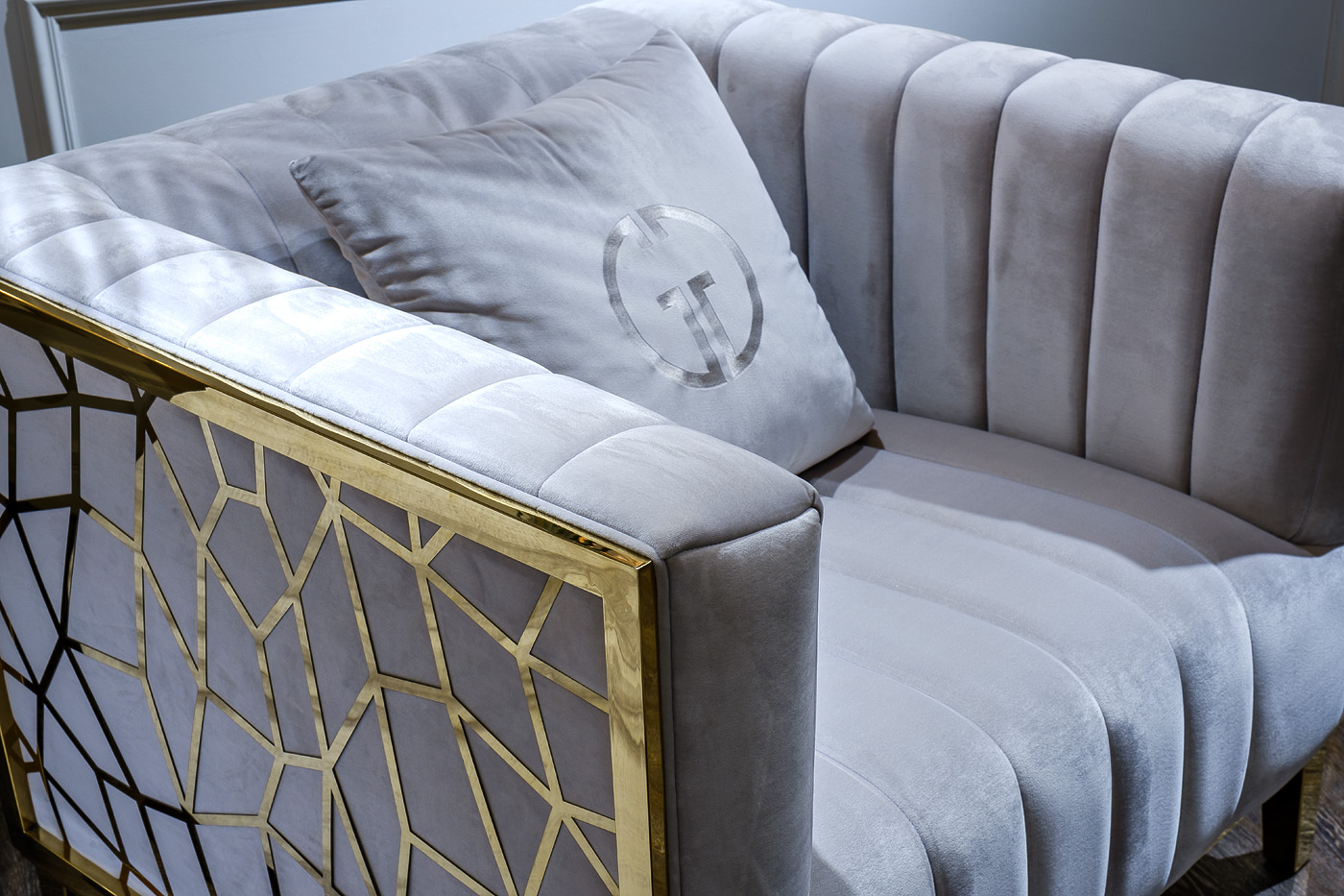 Роскошное прямоугольное креслоиз серии Базель (Basel), в котором воплотились лучшие черты стиля ар-деко. Без ложной скромности и пафоса. Элегантное и максимально комфортное. Невысокая спинка, которая составляет единое целое с подлокотниками, обеспечивает удобную посадку и поддержку спине. Это эксклюзивное кресло имеет свою изюминку – оригинальный каркас из нержавеющей стали золотистого цвета. Декоративная подушка с вышивкой является красивым дополнением, которое делает дизайнерское кресло в интерьере чуть ли не главным украшением. Предлагаем купить данную модель в сочетании с диваном из этой же коллекции.
