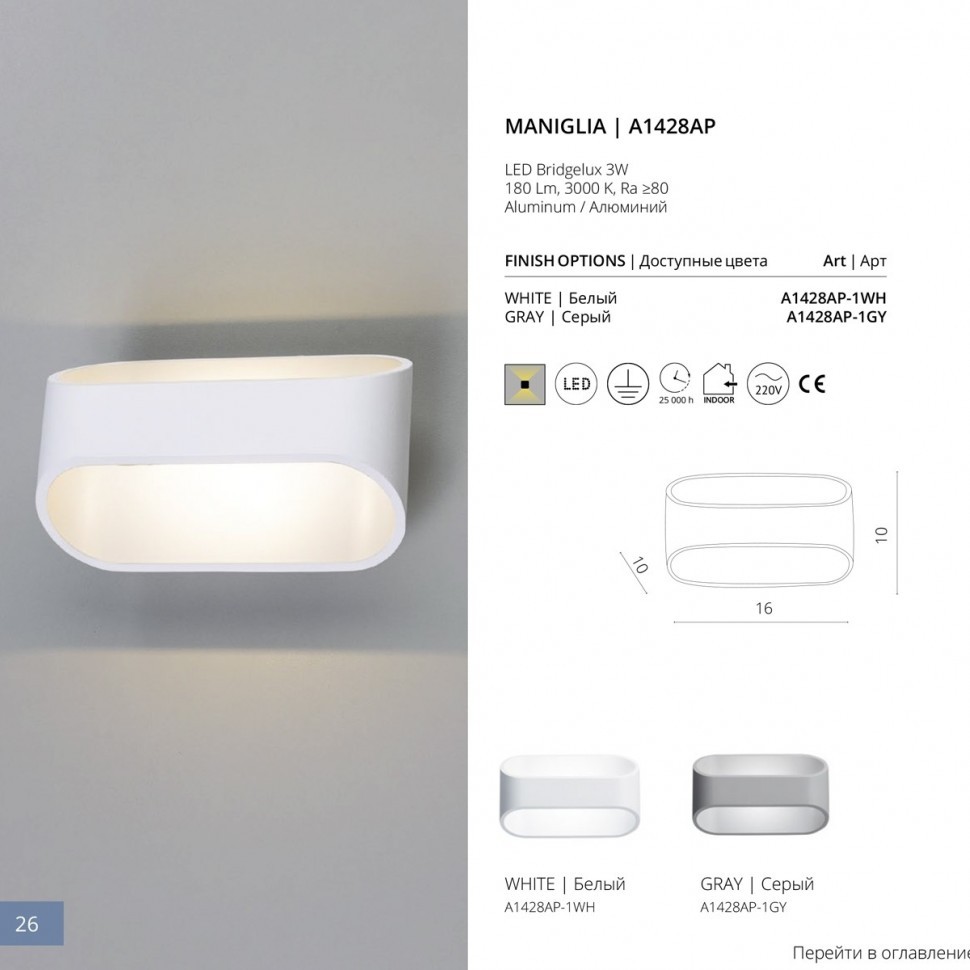 Купить "Настенный светодиодный светильник Arte Lamp A1428AP-1GY"