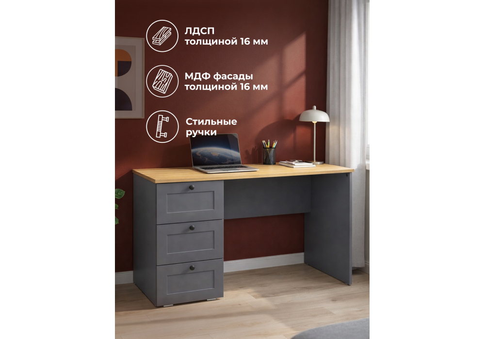 Письменный стол Woodville Опра серый графит / дуб золотой craft 676811 в Нижнем Новгороде
