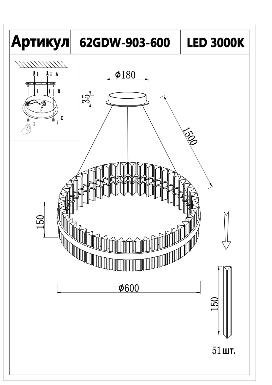 Данную модель 62GDW-903-600 с быстрой доставкой спешите купить по цене 31 800 ₽ в магазине 220svet.ru