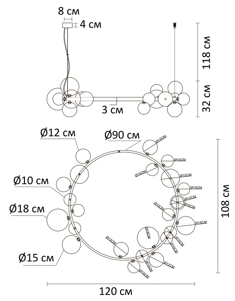 - Ширина: 1080 мм (108 см)