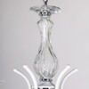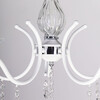 Металлическое основание светильника окрашено в белый цвет. Отдельные элементы основания гальванизированы в цвет хрома. Светильник декорирован выдувным стеклом и подвесками из хрусталя миндалевидной формы.