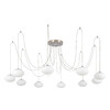 Оригинальная люстра с круглым матовым хромированным основанием и длинными проводами (по 1,55м). Каждый провод можно закрепить на потолке в произвольном порядке, создавая уникальный дизайн светильника. Модель легко адаптировать для высоких, стандартных и низких потолков. Плафоны в форме сфероида изготовлены из матового оптического полимера. В каждом из 10 плафонов находится уникальный светодиодный модуль, обеспечивающий яркое основное освещение или красочную RGB-подсветку с плавной регулировкой яркости во всех режимах света.