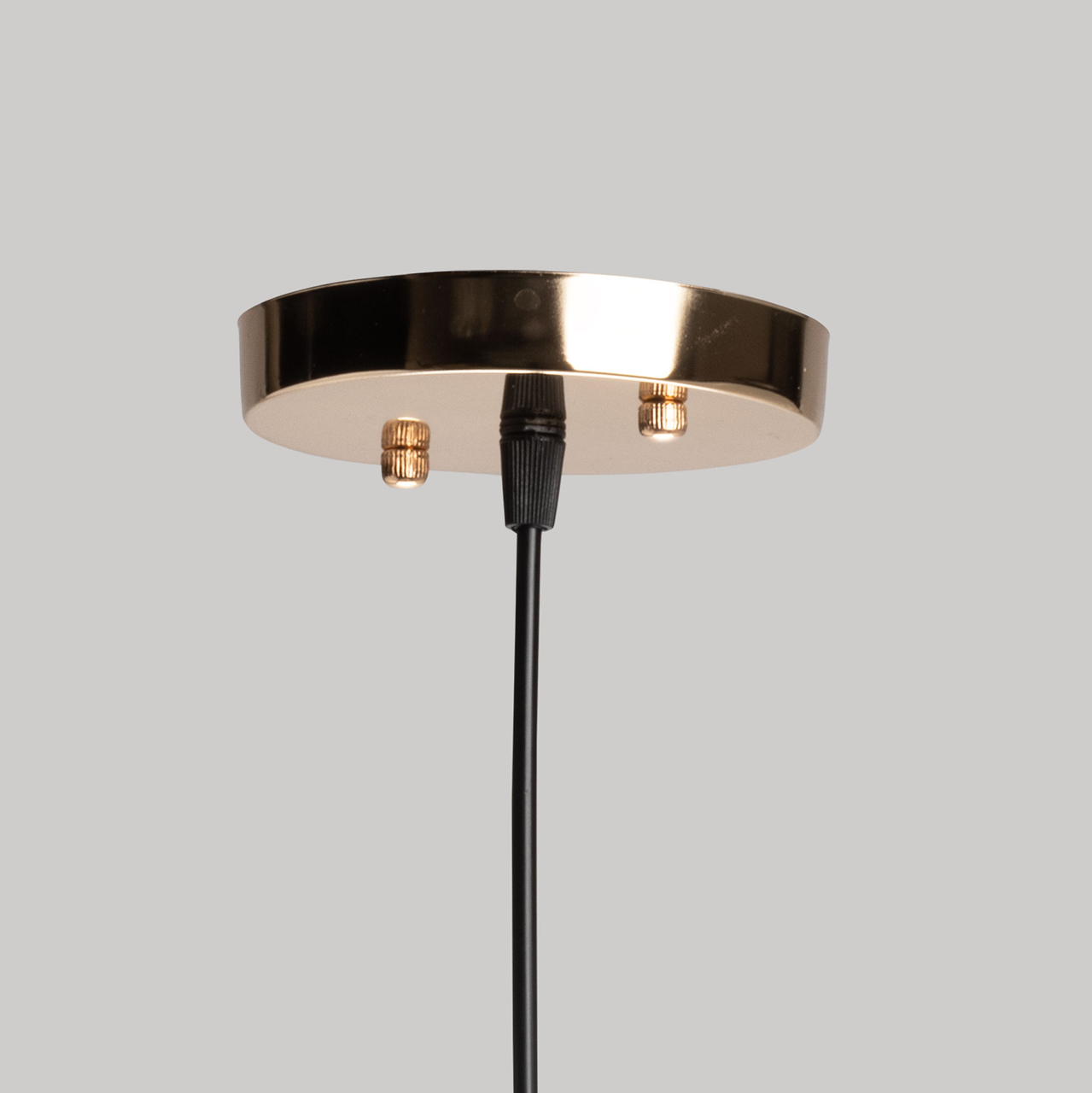 Потолочная чаша и держатель плафона выполнены из металла и гальванизированы в цвет золота. Металлический плфон окрашен в черный цвет. Внутренний стеклянный плафон гальванизирован в цвет шампань.