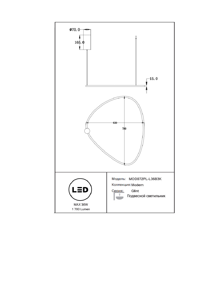 Подвесной светодиодный светильник Glint MOD072PL-L36B3K станет прекрасным дополнением вашего дома и будет радовать вас своим стильным дизайном и функциональностью на протяжении многих лет.