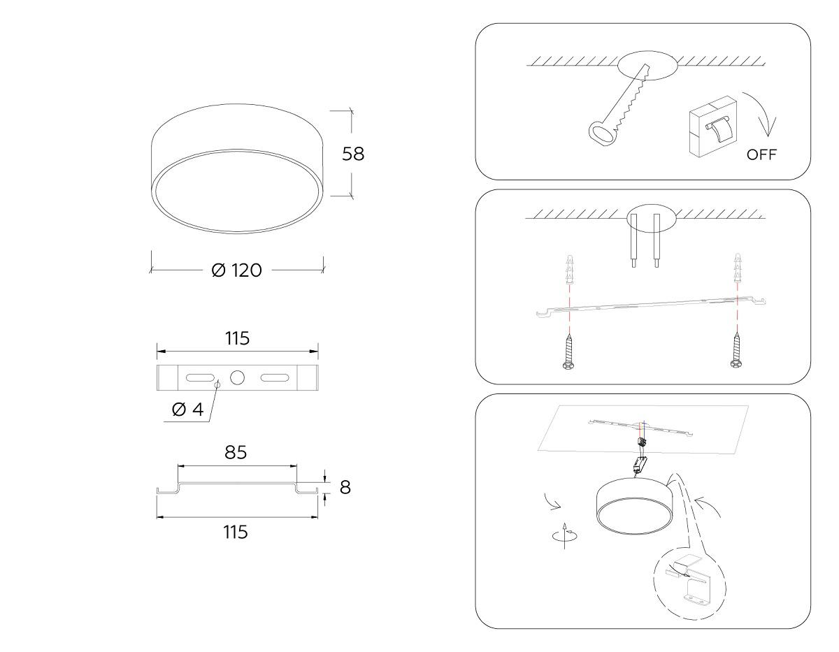 - Место установки: на потолок