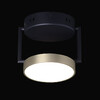 Металлическое основание потолочного светильника обработано по технологии порошкового окрашивания в черный цвет. Корпус плафона гальванизирован в цвет золота. Светодиодные источники света закрыты белым матовым акрилом.