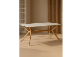 Керамический стол Woodville Unika 180x80 белый спеченный камень / светлое дерево 15920