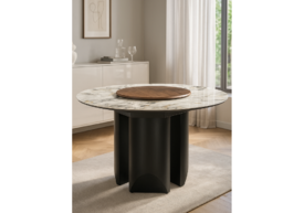 Стол стеклянный раздвижной Woodville Алинг 100(140)х100х76 белый мрамор / черный 532387