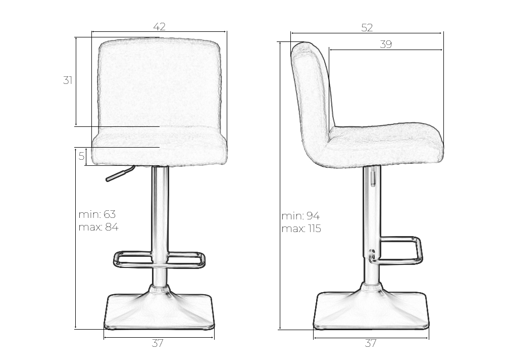 - Высота сиденья: 63 мм