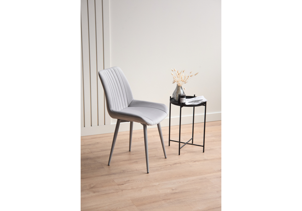Материал каркаса - металл; Материал сиденья - велюр; Материал обивки - велюр; Цвет ножек - серый; Ширина - 50; Глубина - 56; Высота - 82; Ширина сиденья - 47; Глубина сиденья - 42; Высота сиденья - 48;