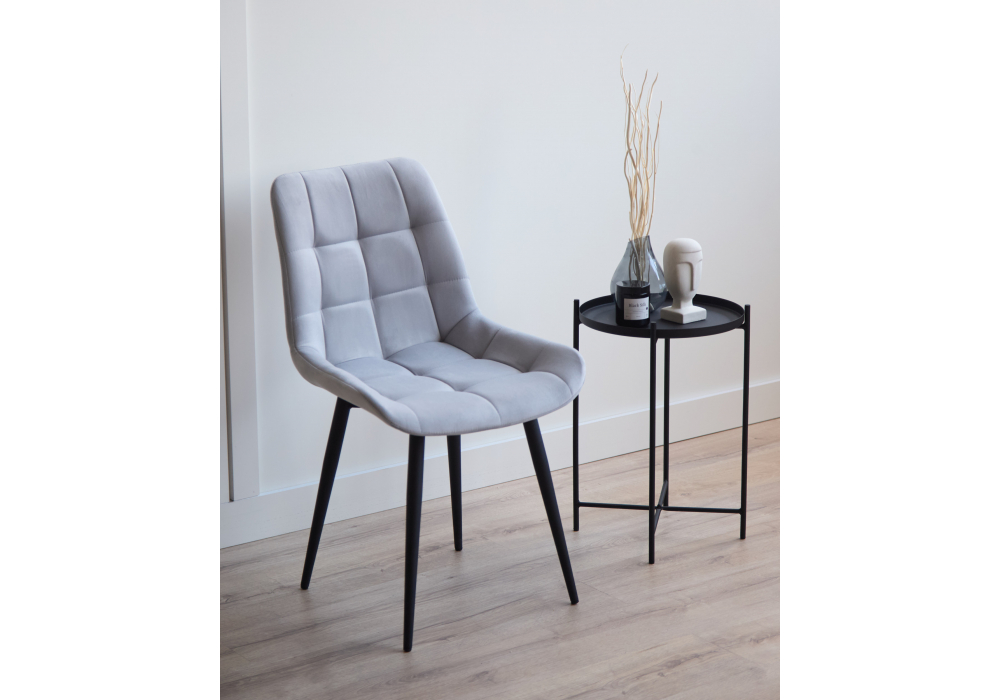 Материал каркаса - металл; Материал сиденья - велюр; Материал обивки - велюр; Цвет ножек - черный; Ширина - 50; Глубина - 60; Высота - 80; Ширина сиденья - 44; Глубина сиденья - 41; Высота сиденья - 48;