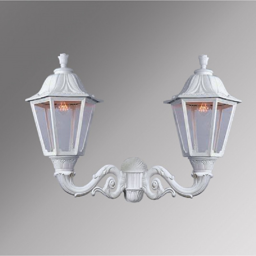 Светильник уличный настенный FUMAGALLI большого размера серии NOEMI, модель EVA/NOEMI. Двойной настенный уличный фонарь, большого размера с креплением на стену с помощью 2 консолей ADAM большого размера. Устанавливается на стены домов, котеджей, заборов и других вертикальных поверхностей. Используется для освещения входных групп, общего уличного освещения, декоративной и фасадной подсветки. Изготовлены в Италии, по уникальным технологиям "FUMATECH" из современного композитного полимера RESIN. Этот материал в 5 раз прочнее металла, не ржавеет, не окисляется, не выгорает на солнце, его не нужно красить. Все светильники пыле-влаго защищены по стандарту IP55 (Пылезащищенные, защита от водяных струй с любого направления). Рассеиватель выполнен из антивандального, не мутнеющего и не горючего PMMA (ПолиМетилМетаАкрилат). Срок службы светильника - не менее 20 лет. Температура использования от -60 до +90. В серии NOEMI есть садовые фонари в настенном (OFIR/NOEMI, MIRRA/NOEMI) подвесном (SICHEM/NOEMI) и наземном исполнении (IAFAET.R/NOEMI, ALOE.R/NOEMI, ARTU/NOEMI, GIGI/NOEMI, RICU/NOEMI, NEBO/OFIR/NOEMI 1L, NEBO/OFIR/NOEMI 2L, TABOR/ADAM/NOEMI 3L) со столбами разной высоты, с разным количеством и конфигурацией голов. Консоли настенных фонарей и кронштейны светильников на столбах освещения могут устанавливаться в положение вверх и вниз. Столбы выше 150 см имеют в основе мощную стальную трубу с двойной оцинковкой. При заказе требуется выбрать цвет корпуса, цвет плафона и тип патрона (Е-27 или LED GX-53). Возможен светодиодный вариант. По стилю и дизайну серия уличных светильников NOEMI похожа на светильники среднего размера серии RUT и на светильники малого размера серии ANNA. По размеру относится к большим парковым светильникам как серия SIMON и GLOBE 400.