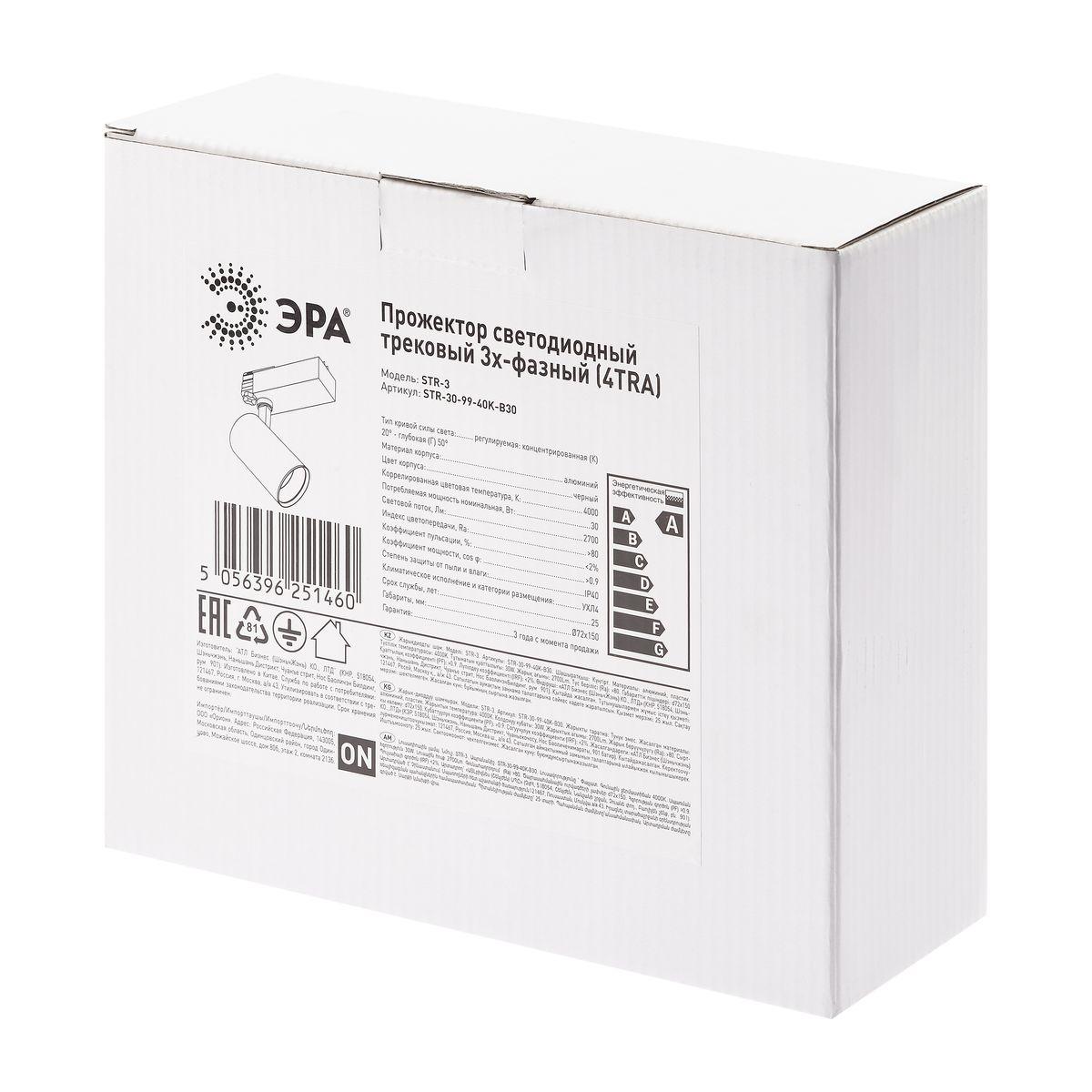 Купить "Трековый светодиодный светильник ЭРА STR-30-99-40K-B30 Б0049791"