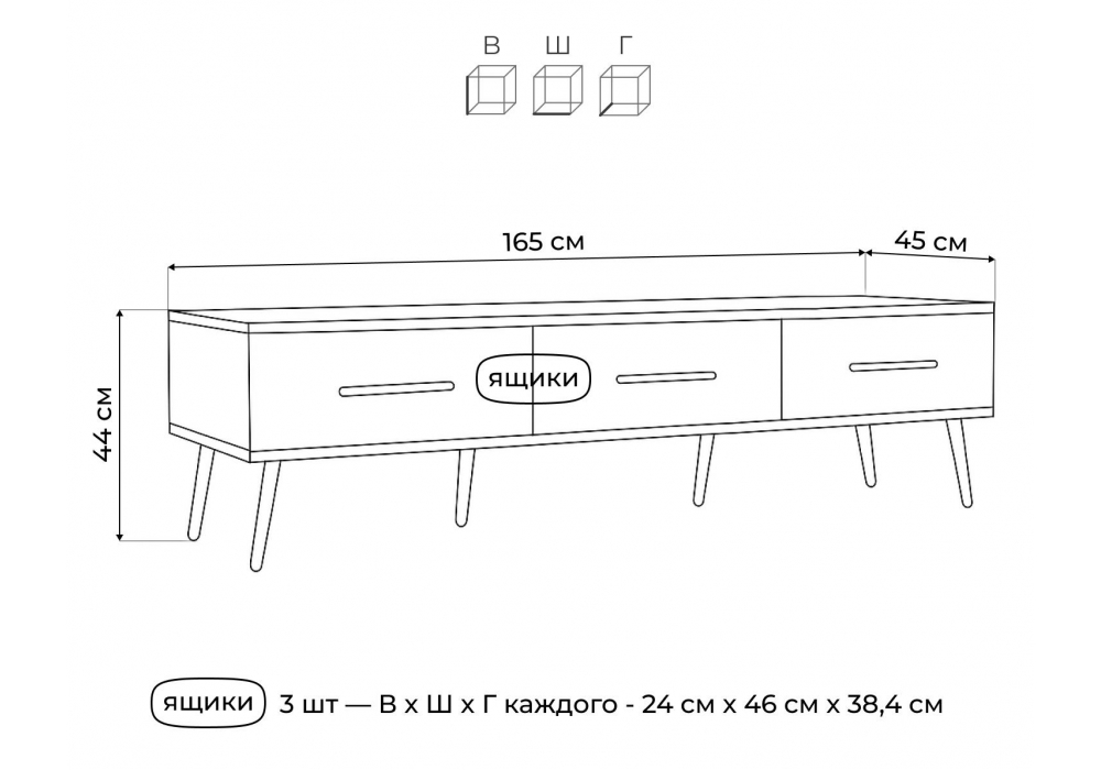 Материал каркаса - ЛДСП; Ширина - 165,2; Глубина - 45; Высота - 44;