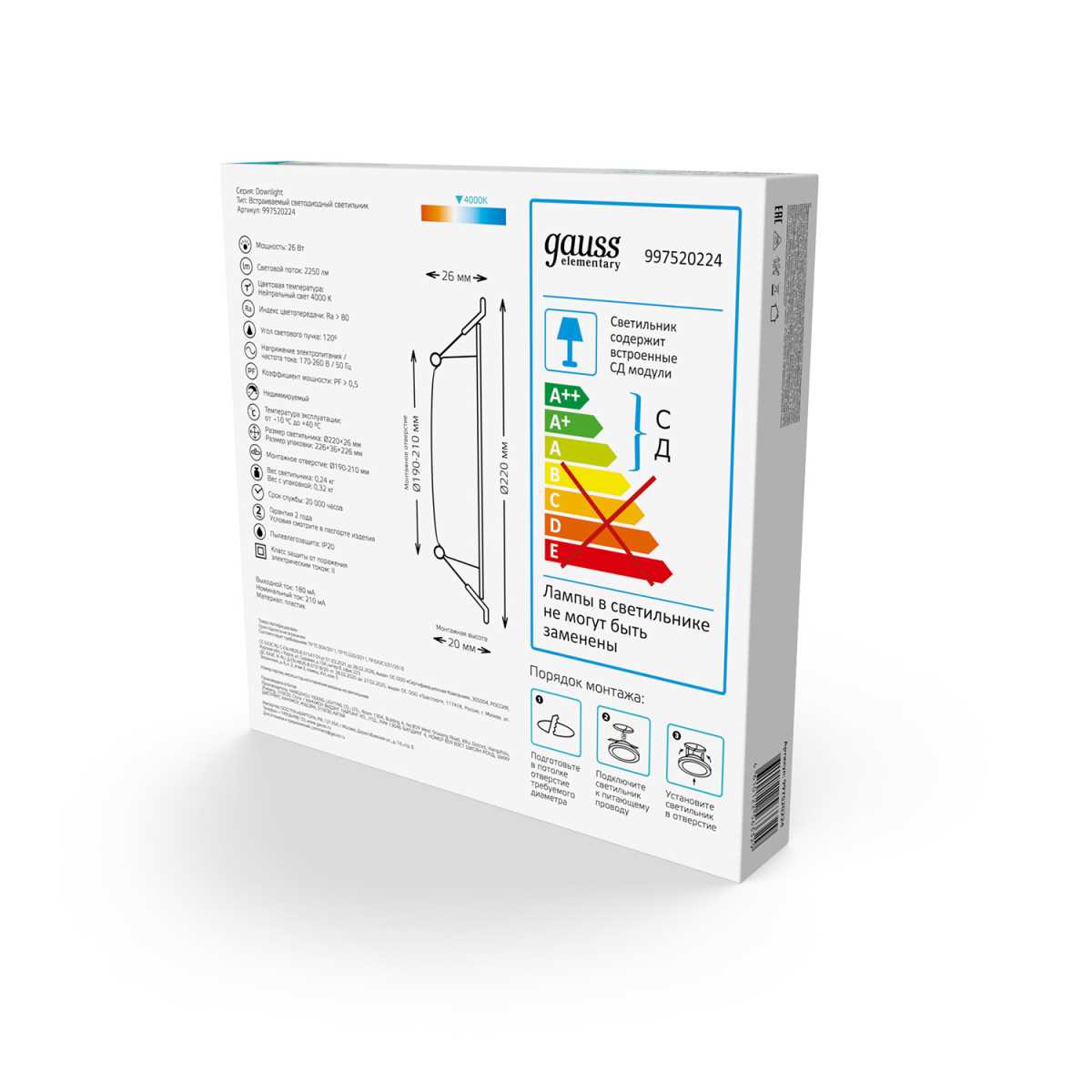 Купить "Встраиваемый светильник Gauss 997520224"