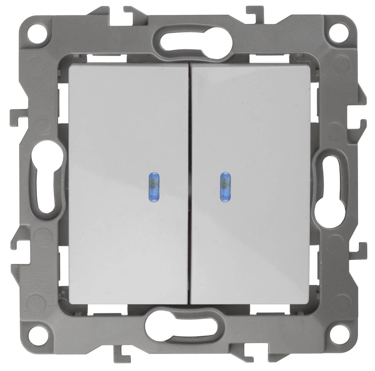Купить "Выключатель двухклавишный с подсветкой ЭРА 12 10AX 250V 12-1105-01 Б0014657"